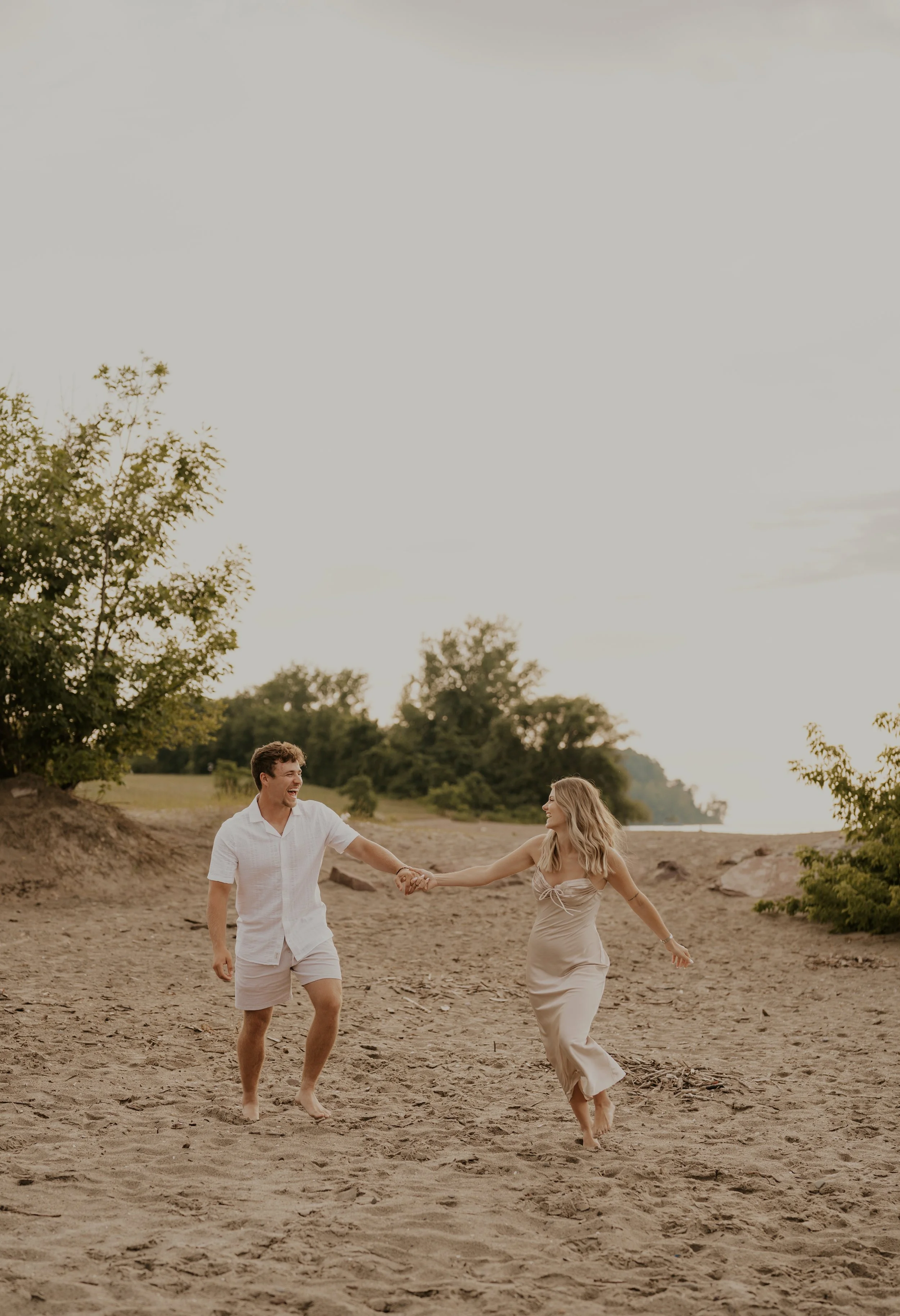 I start every session saying a few things, giggle when you feel like it, kiss when you feel that magnetism, just move through the prompts like I am not even here, and it may feel silly but to trust the process. Abby and Travis came in trusting me and it shows just what can happen when you let loose and trust your photographer. We ran along the beach with the golden sun fractaling through behind them. We played along the waters edge and spun around in the sand. We got cozy with some kisses and saw the very true spark between these two.